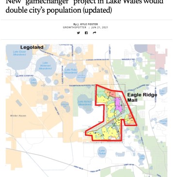 New “gamechanger” project in Lake Wales would double city’s population (updated) September 9, 2021 Link to Growthspotter article